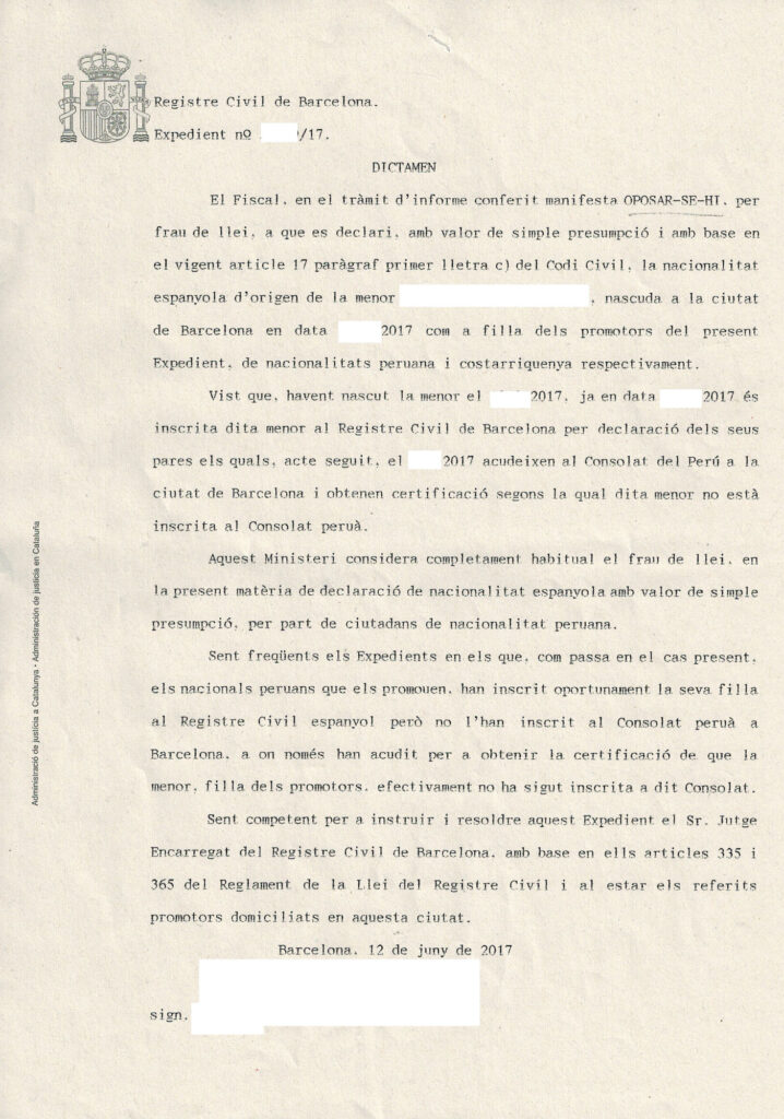 El artículo 17. c) del Código Civil establece que son españoles de origen los nacidos en España de padres extranjeros. Esto se aplica en el caso de que ambos carezcan de nacionalidad (apátridas). O, si la legislación de ninguno de ellos atribuye al hijo una nacionalidad. Por lo tanto, en este caso puede realizarse un […]